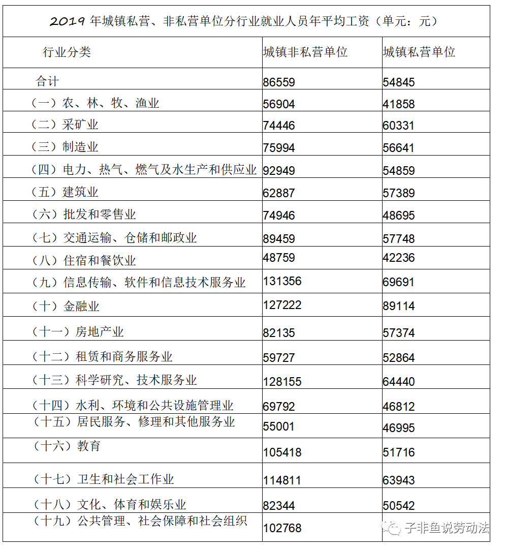 6、2019年城镇非私营单位分行业就业人员年平均工资、2019年城镇私营单位分行业就业人员年平均工资(单位:元)